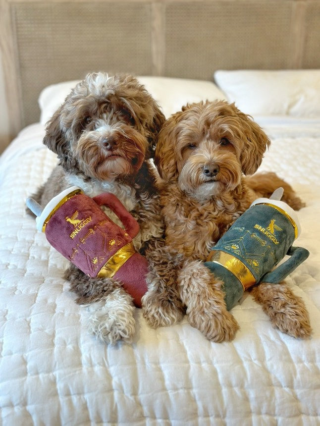 Bring festive fun to your dog’s playtime with the Snuggly Cup Holiday Green and matching Green Stars Seasons Grrreetings Bone. Crafted from soft, durable plush with squeakers for interactive entertainment, this holiday duo is perfect for fetch, chewing, and snuggling. The cheerful holiday colors and playful designs make this set a great gift for dogs and a cute addition to your seasonal décor and Christmas morning surprises.