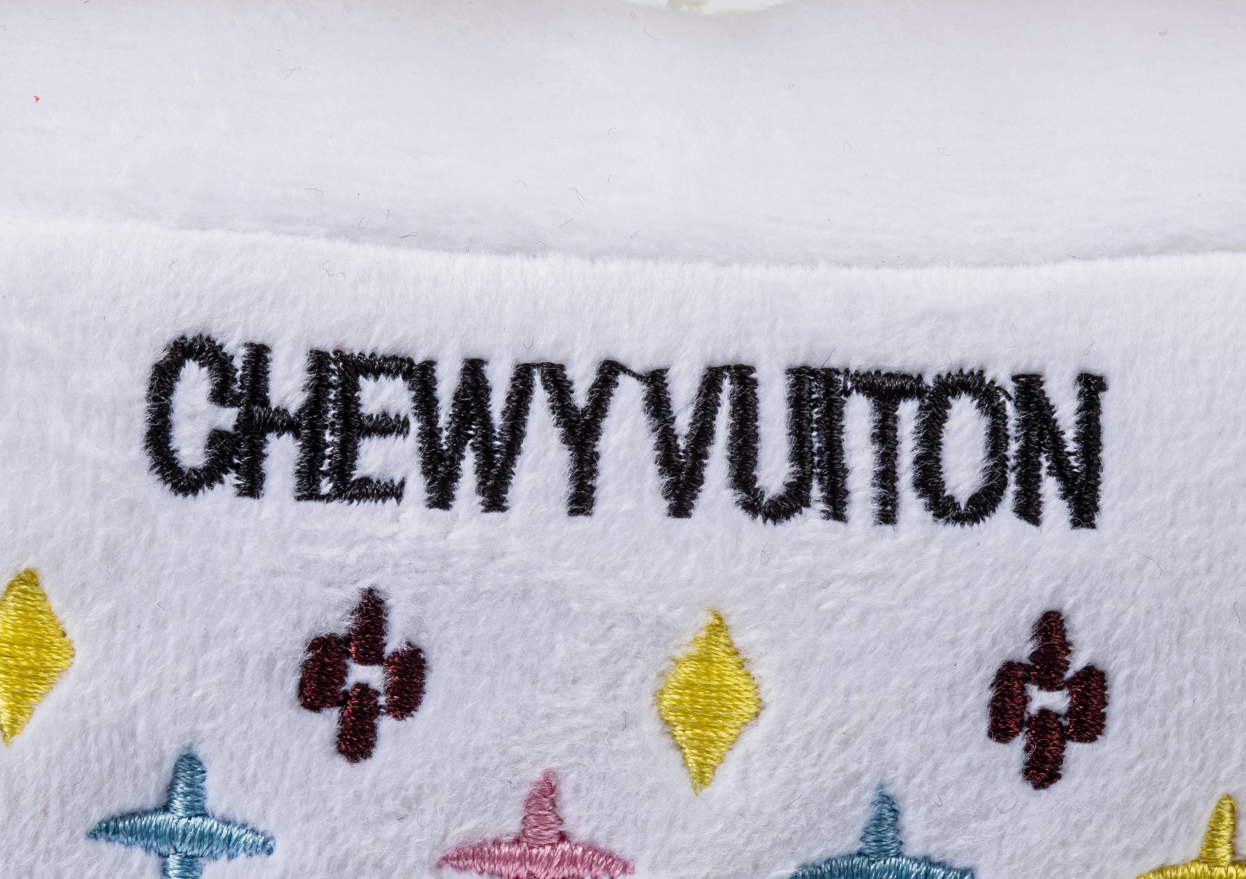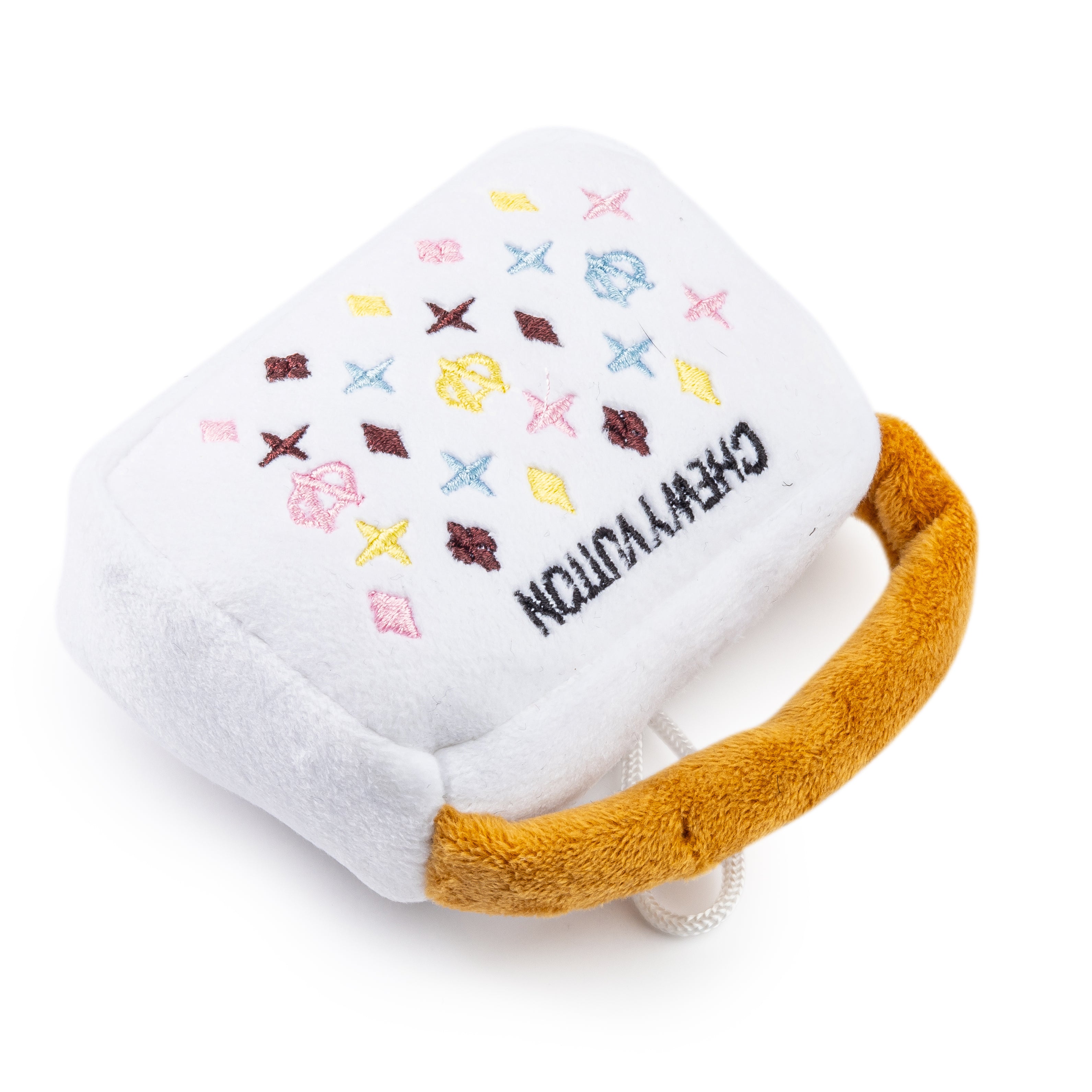 One of our most fetch-ing designs, our Chewy Vuiton Purse Toy is